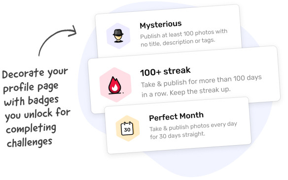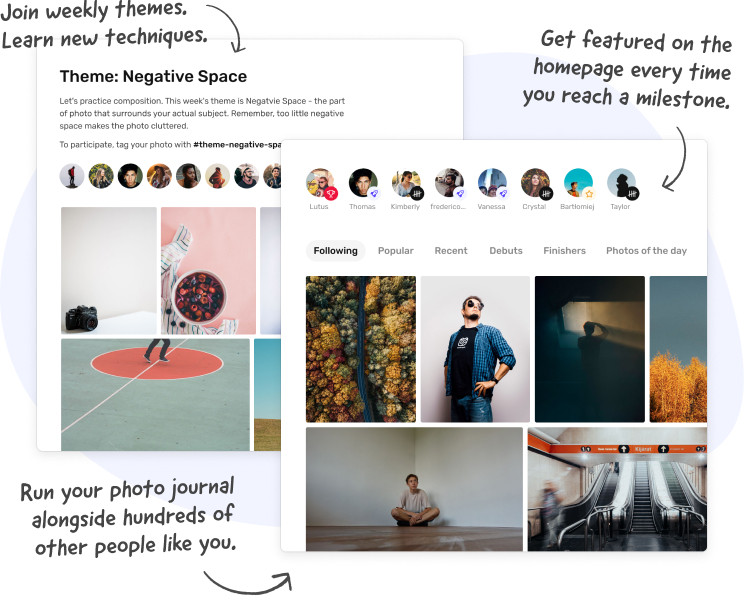 • Access to a global community of more than 10,000 people sharing the same goal - taking photos every day